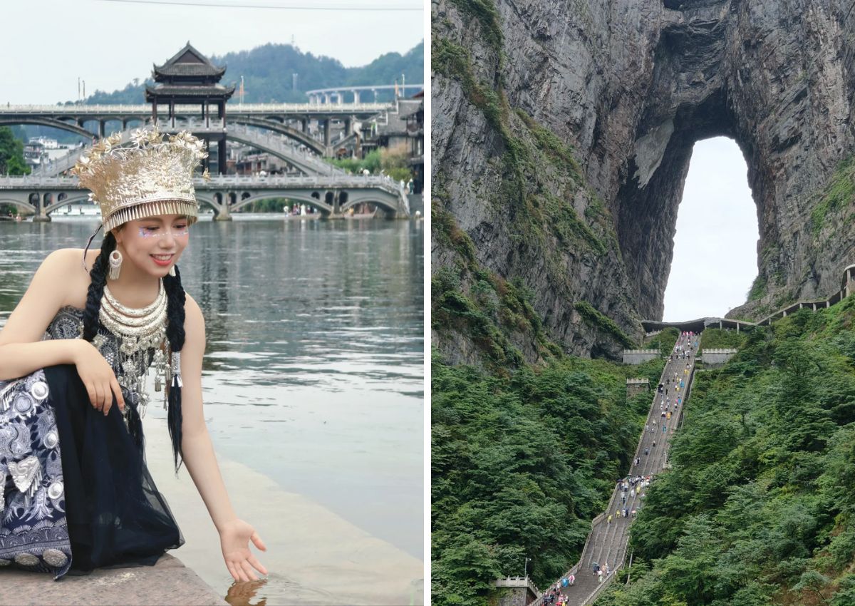 📍D4天:天門山-全亞洲最長索道(全長4754公尺)-玻璃棧道-飛機穿越的天門洞-999階梯-鬼谷棧道-雲夢仙頂等景點。芙蓉鎮-掛在瀑布的古鎮-夜遊鳳凰古城